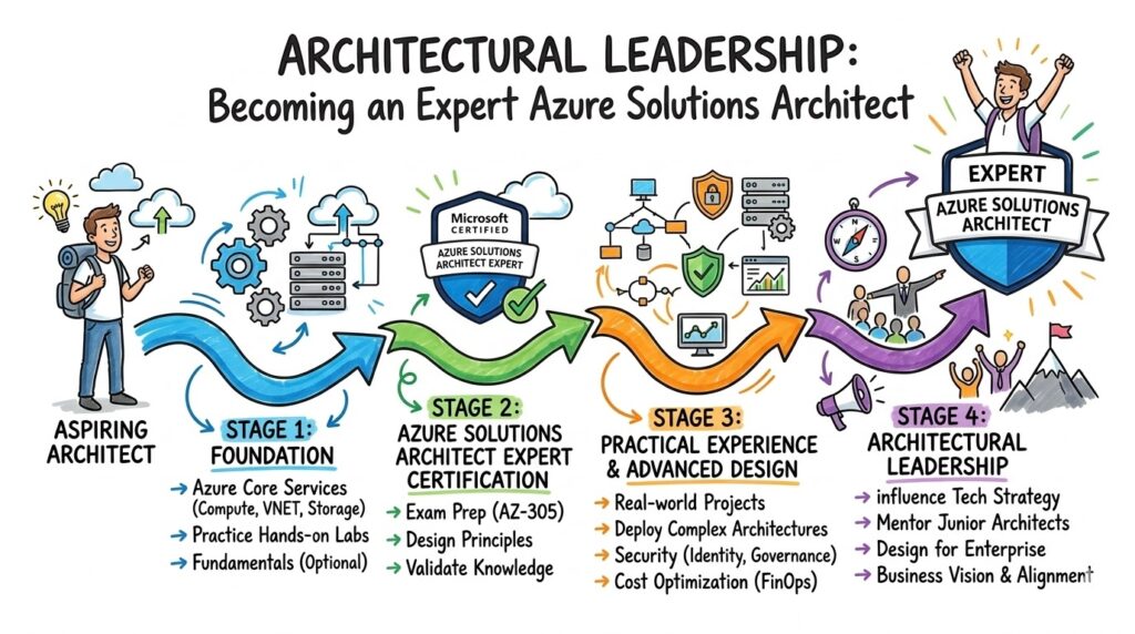 The path to becoming a master architect follows a progressive structure starting with basic cloud concepts. Most professionals then advance to the associate level to gain hands-on experience in administration or development. The Azure Solutions Architect Expert represents the final, most advanced tier of this professional hierarchy.