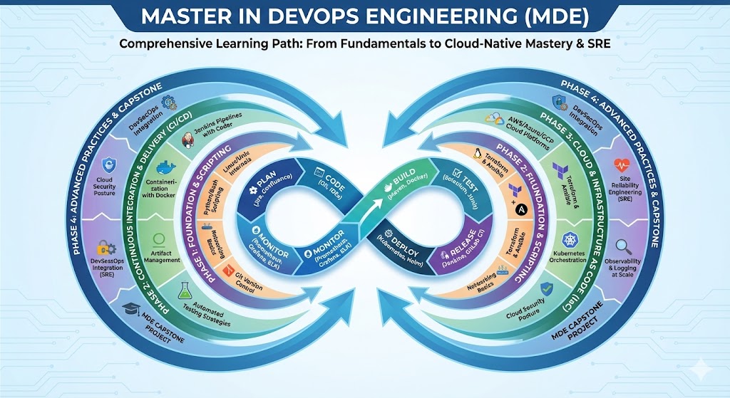 Modern engineering environments demand more than just basic scripting skills or a passing familiarity with cloud providers. Consequently, the Master in DevOps Engineering (MDE) serves as a definitive blueprint for professionals who aim to architect high-velocity software delivery systems. This guide targets software engineers, platform architects, and engineering managers who seek to eliminate the friction between development and production teams. By following this roadmap at DevOpsSchool, you gain the technical maturity necessary to navigate the cloud-native landscape with total confidence.